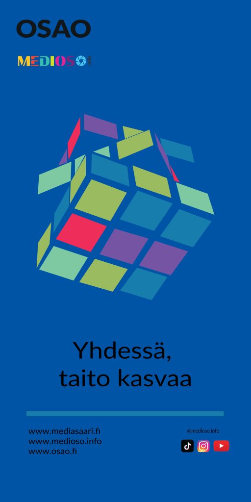 Tein rollup- julisteen, jonka tarkoitus oli markkinoida media-alaa. En mielestäni onnistunut markkinointimielessä, mutta opin vähän illustratorin käyttöä. Käytin työssä siis pääosin illustratoria ja tein pieniä juttuja photoshopilla.