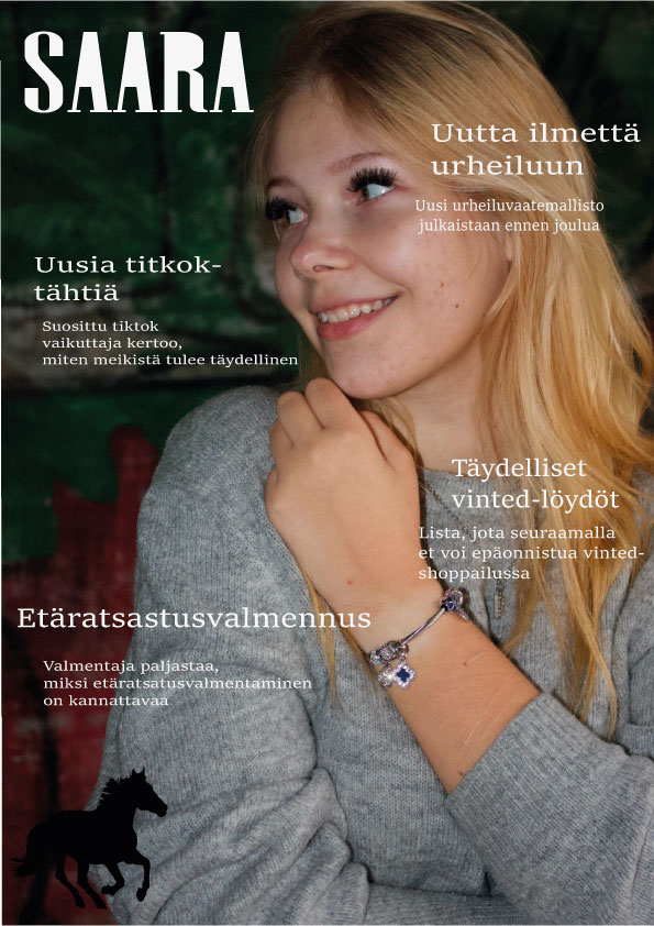 Tein kuvitteelliseen lehteen kannen. Käytin työssä illustrator ohjelmaa.